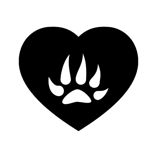 Bear footprint in a heart black shape