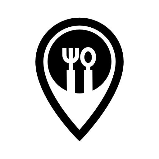 Map pointer with spoon and fork for restaurants
